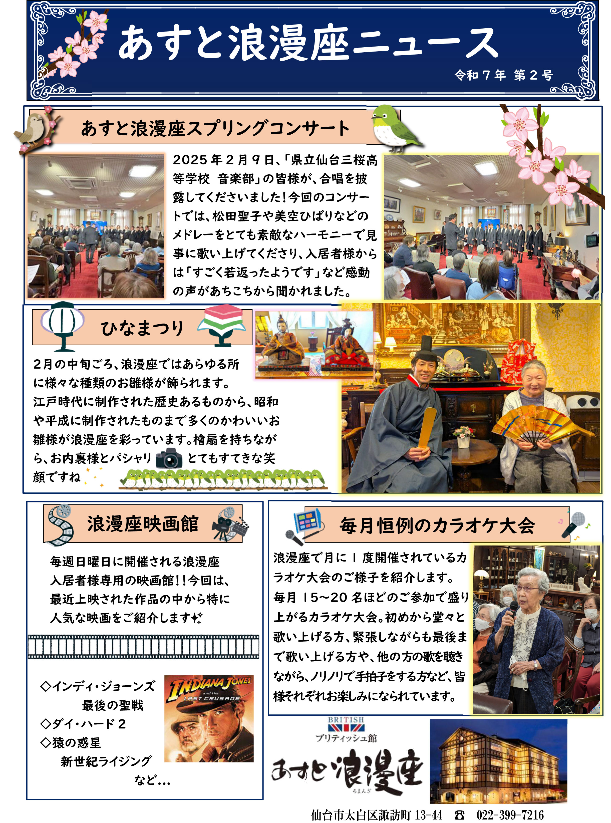 「あすと浪漫座」では、年に数回定期的に「あすと浪漫座ニュース」を発行しています。