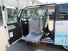 公益財団法人JKA様の「競輪とオートレースの補助事業」により、送迎車を購入し、令和8年3月17日に納車されました。この車両は、助手席がリフトアップする仕様となっており、前後のドアが大きく開くことで体の不自由な方でも乗り降りが楽になります。利用者様からも好評です。新しい車両の導入によって送迎サービス向上につながることを期待しております。