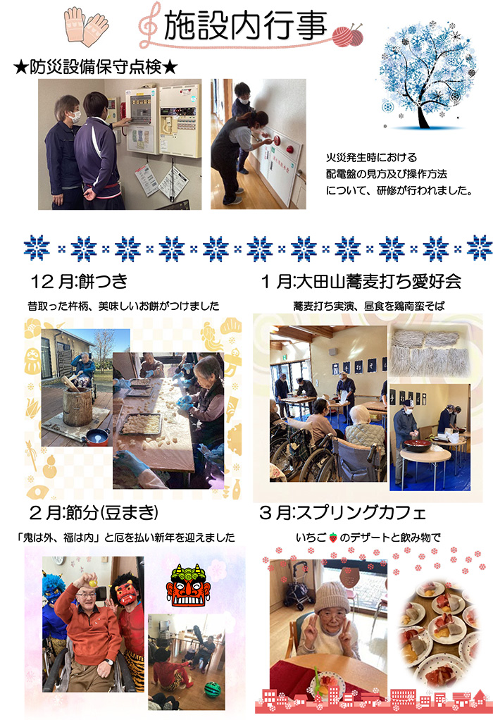 春祺荘では1年を通して1日2回の消毒作業を徹底しています。感染症の予防と蔓延の防止に努めています。 冬季は各居室に加湿器を設置し乾燥対策を行っています。