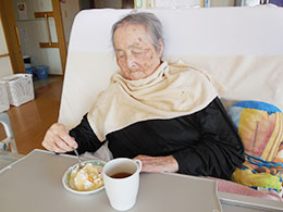 皆さん、美味しそうに召し上がられていました。 - 100歳のお誕生日会