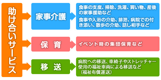 住み慣れた地域で安心して暮らせるように、市民のみなさまの参加と協力により支えあっていく、相互援助のための会員制の組織で、営利を目的としない民間団体です。