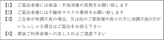 1.の面会方法につきましては、下記の注意事項を必ずお守り下さい。
