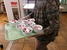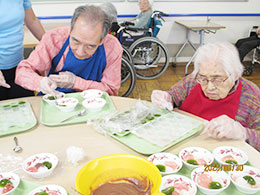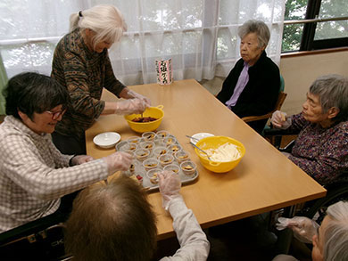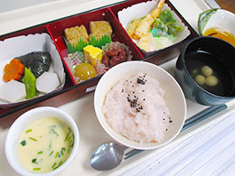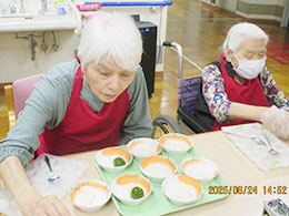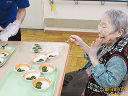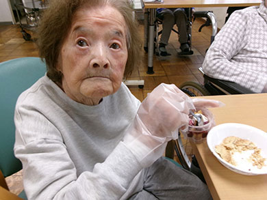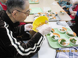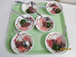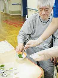 - おいしい食事の提供に加えて、ご利用者への個別対応が出来るようになりました。嚥下しやすい『ゼリー食』の提供と共に現在は見た目にも美味しいと感じられる『ソフト食』にも取り組んでいます。 月1回のごちそう日や選択食を通じて、季節の移り変わりをメニューに反映させ、楽しみの一つとなるように努めています。