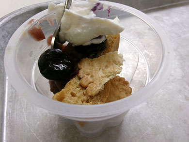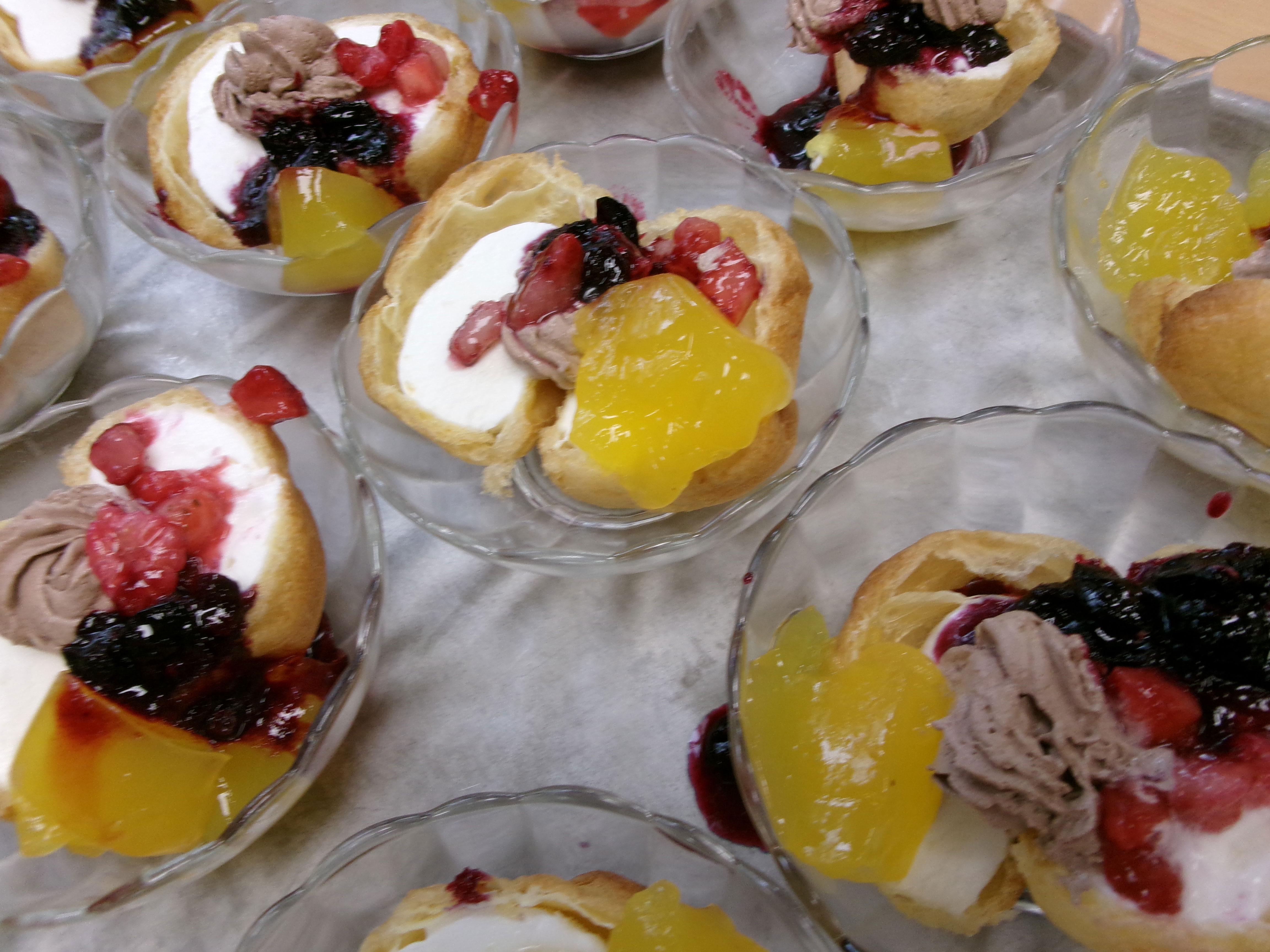 シューアイスに果物や生クリームをトッピングして、さらに美味しいおやつになりました!皆さん甘い物は大好きですね!