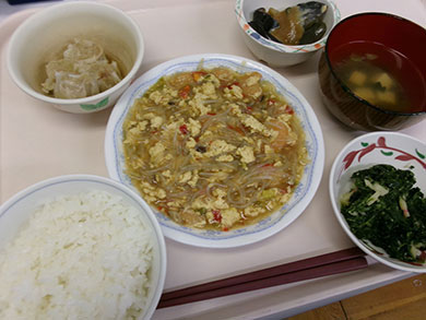 誕生日会の特別メニュー・鶏南蛮蕎麦・冷やし中華・麻婆豆腐です。