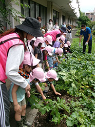 近隣の保育園児23名が来苑し、浅川苑の庭で「じゃがいも掘り」を行いました。