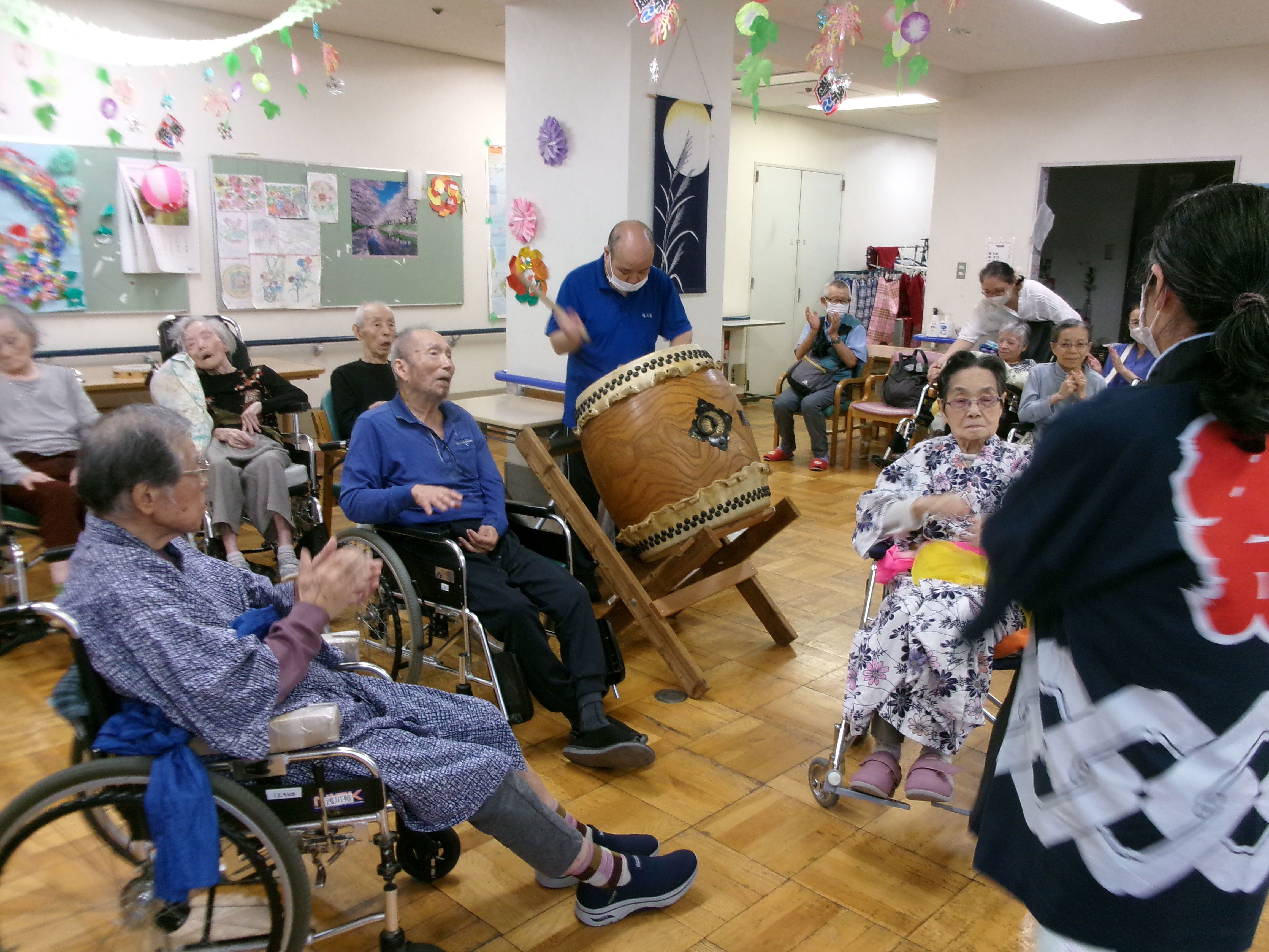 今年も「納涼会」を開催致しました!暑い中、沢山のご家族様に参加して頂きました!御神輿、盆踊り、すいか割りと楽しい1日となりました。今年は初の試みで、ご利用者さんによるギター演奏もあり、とても盛り上がりました!来年は職員の盆踊りをもっと強化し練習したいと思います。