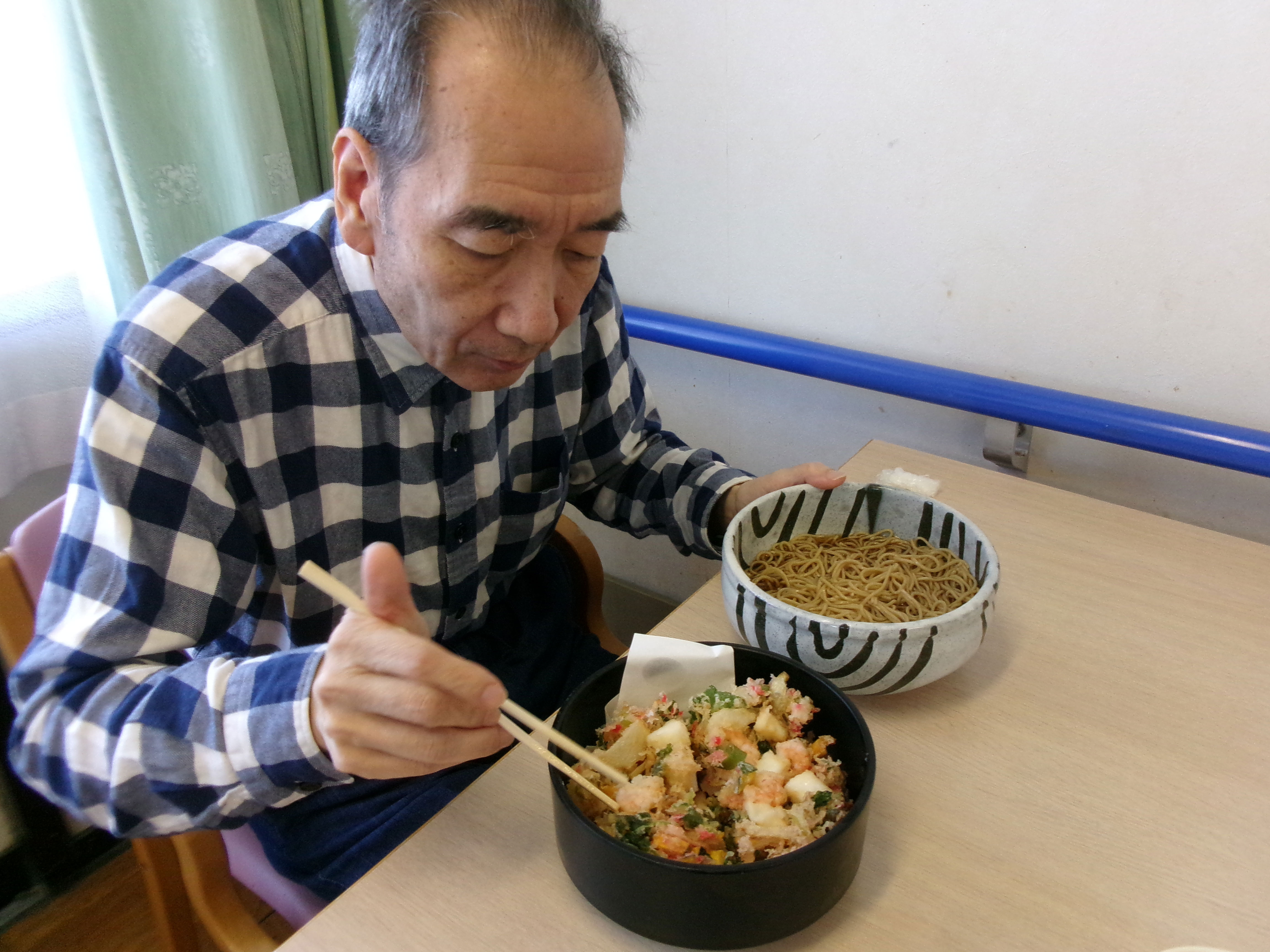 この日誕生日のご利用のリクエストでお昼に出前を取りました。大きなかき揚げ!大満足でした!