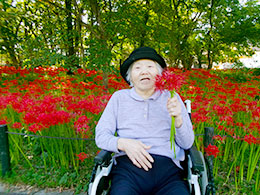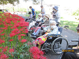 ご家族も何組か参加頂けました。彼岸花は満開で、ご利用者の笑顔も満開でした!