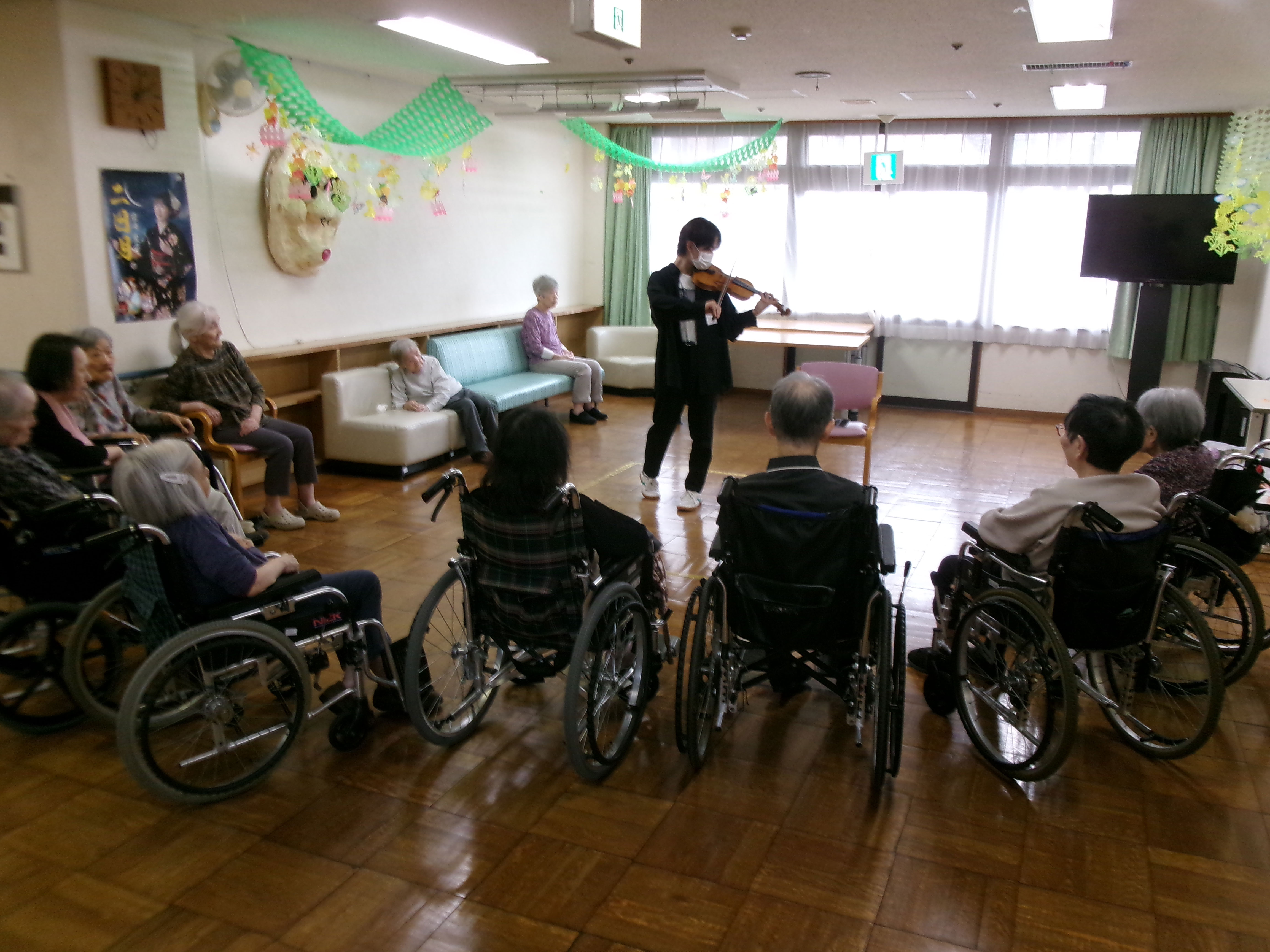 午前中は風船バレーを行って体を動かし、午後はバイオリンの演奏を披露して貰い音楽を楽しみました。