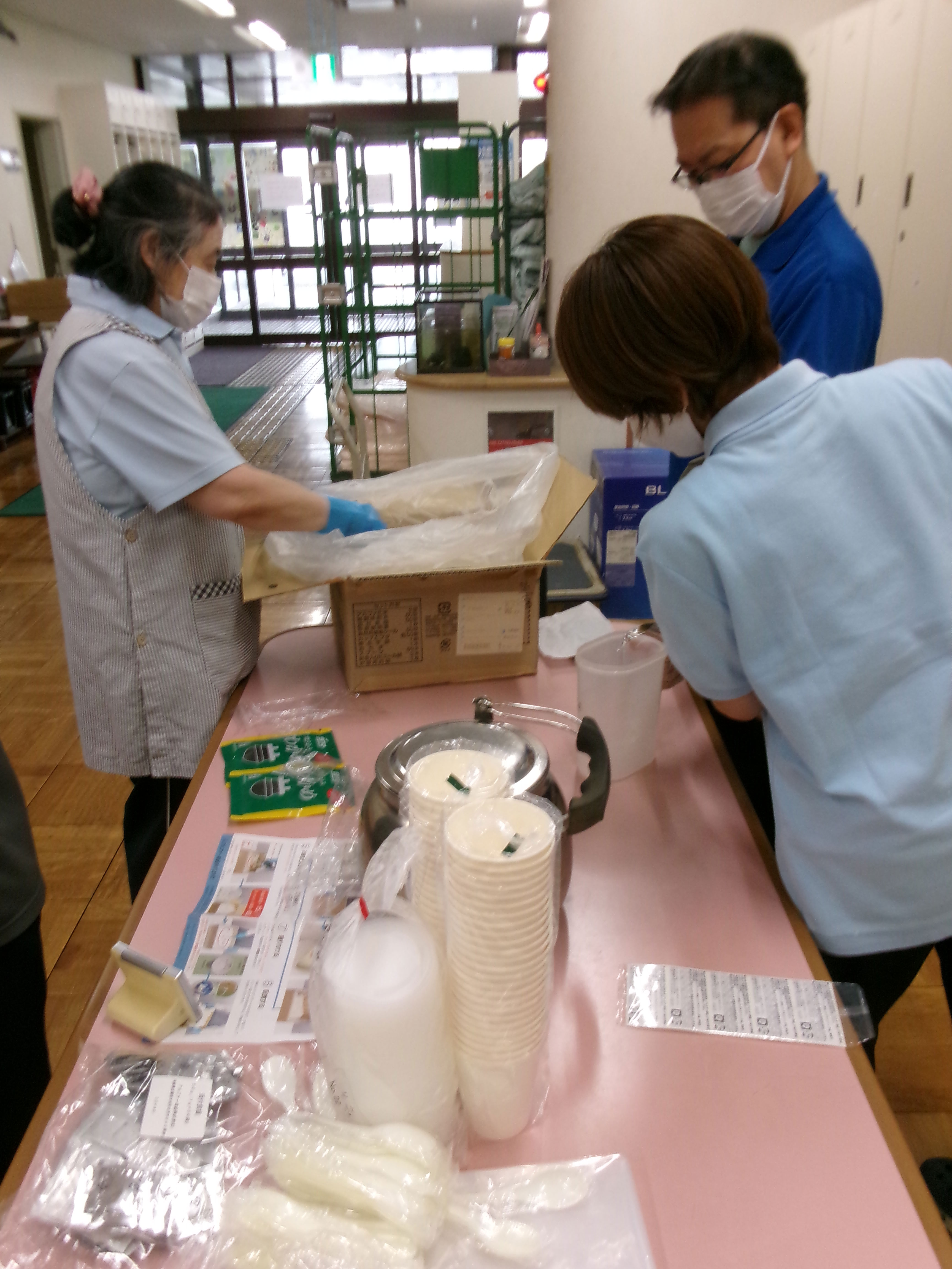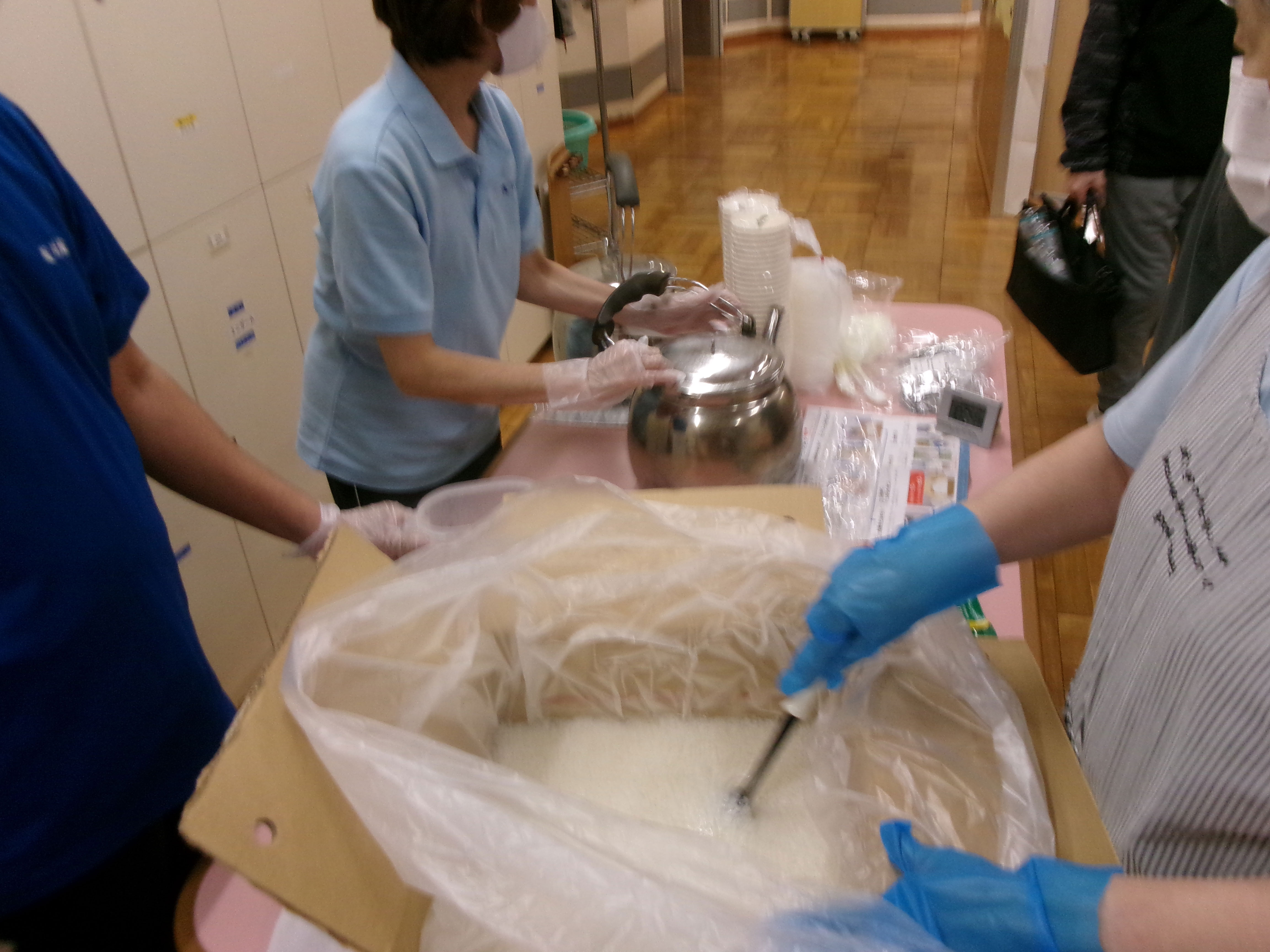 災害時に備蓄しているアルファ米の消費期限が近くなった為、災害を想定して炊き出しの訓練を行いました。