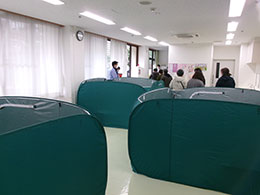 災害時に備え、福祉避難所の設営、受け入れ準備の訓練を行いました。