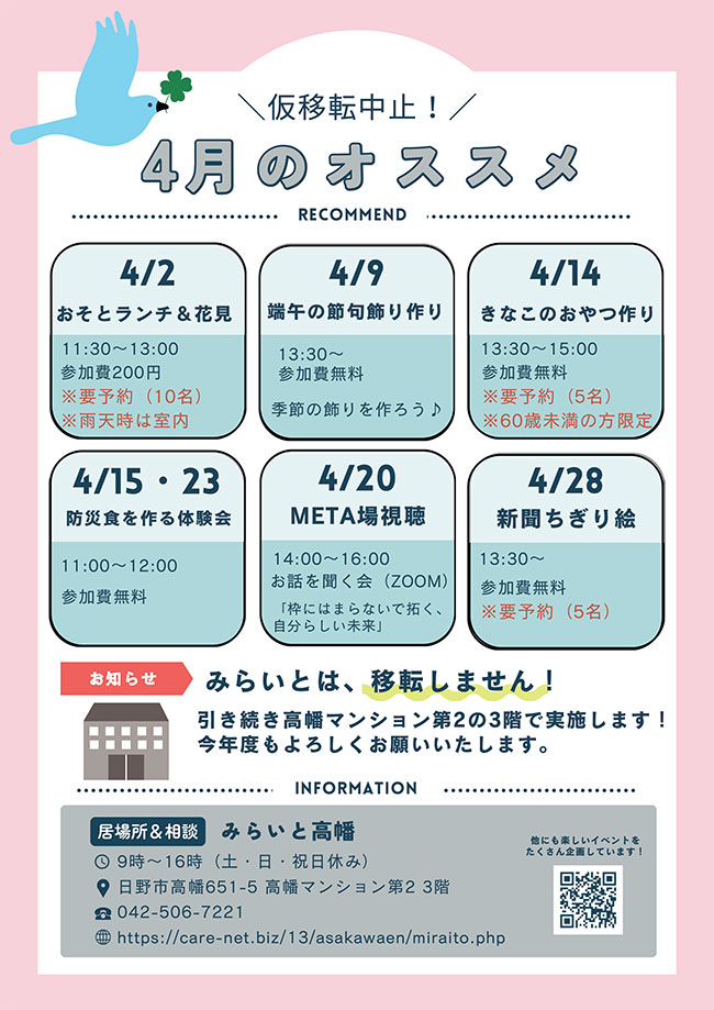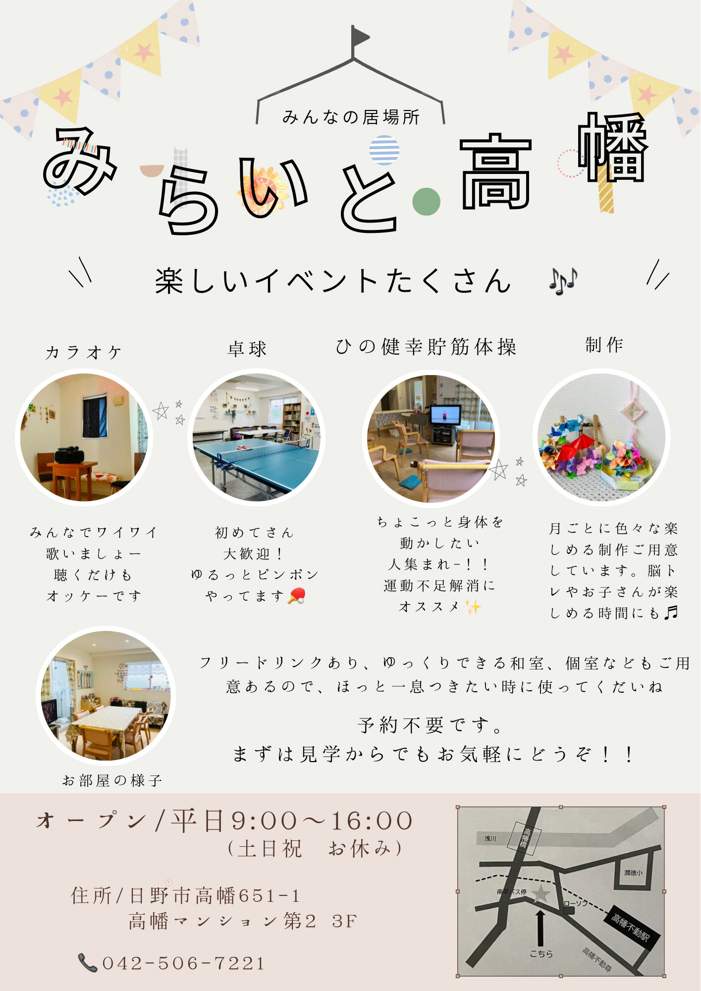 また、地域の方が安心して過ごせる居場所を併設しております。