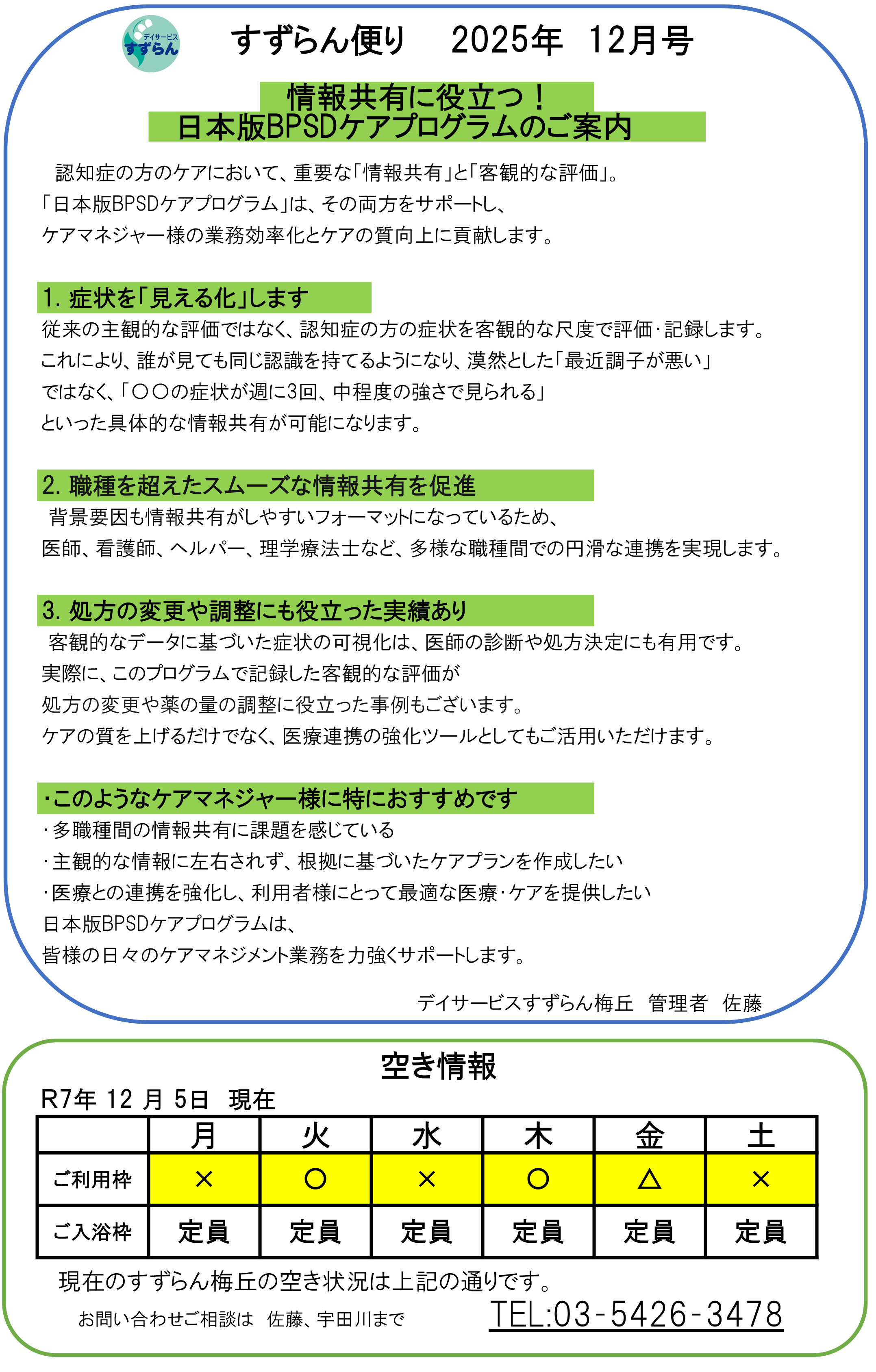 「デイサービスすずらん梅丘」で導入している「BPSDプログラム」が読売新聞(12月17日)に紹介されました。