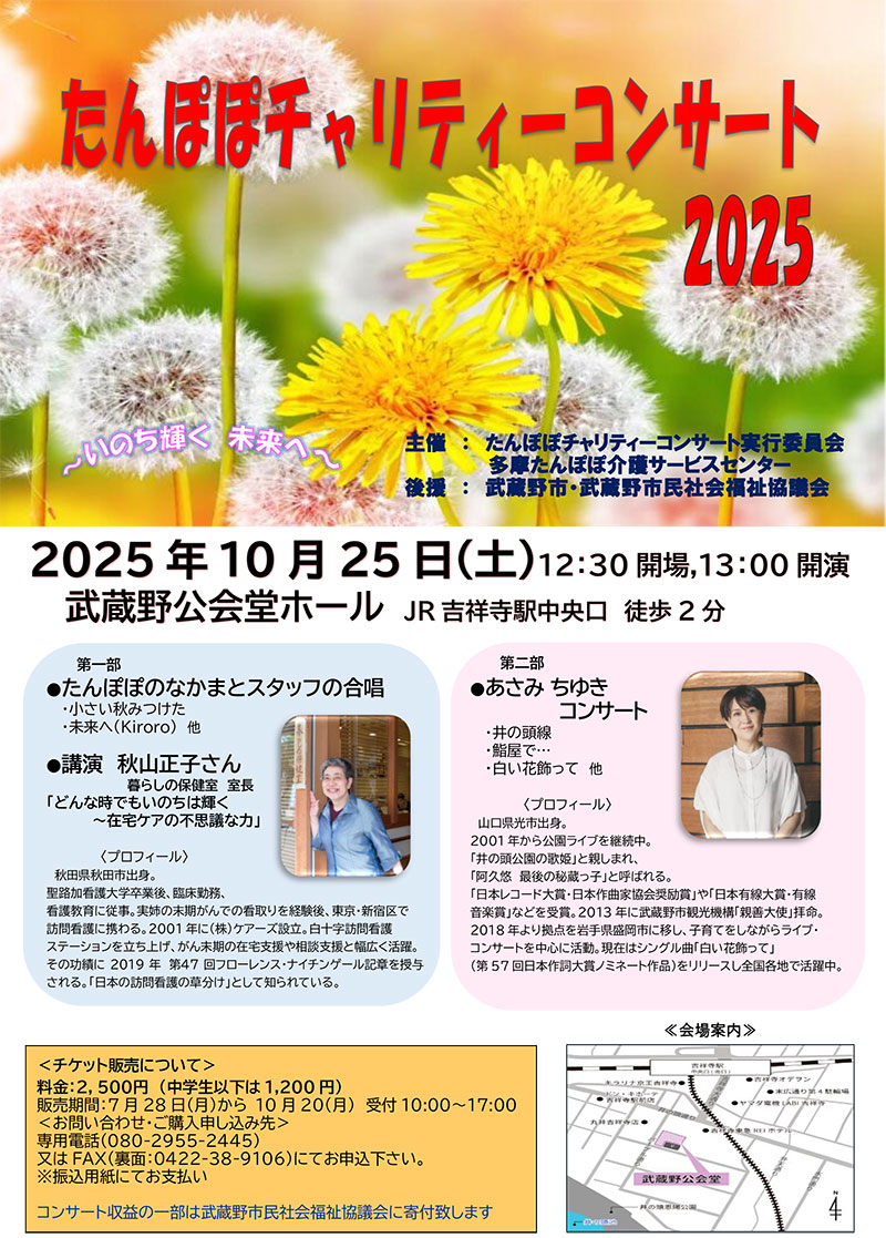 - 9月16日(土)たんぽぽチャリティーコンサート2023開催のお知らせ。