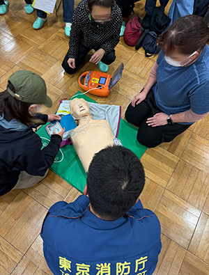 向島消防署より講師の先生をお迎えし、AEDを使用した応急手当講習会を開催しました。