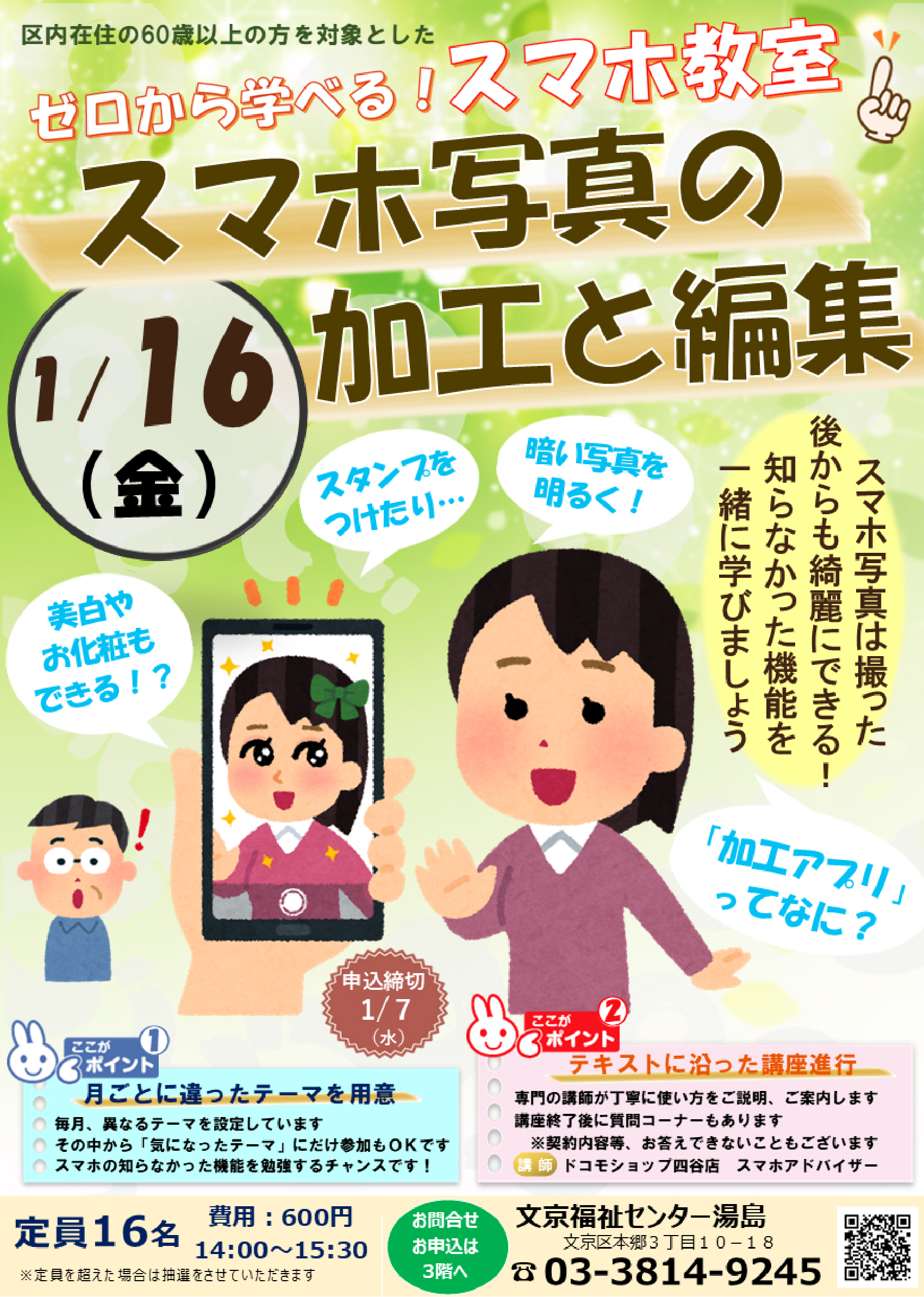 『ゼロから学べる!スマホ教室 1月』のご案内