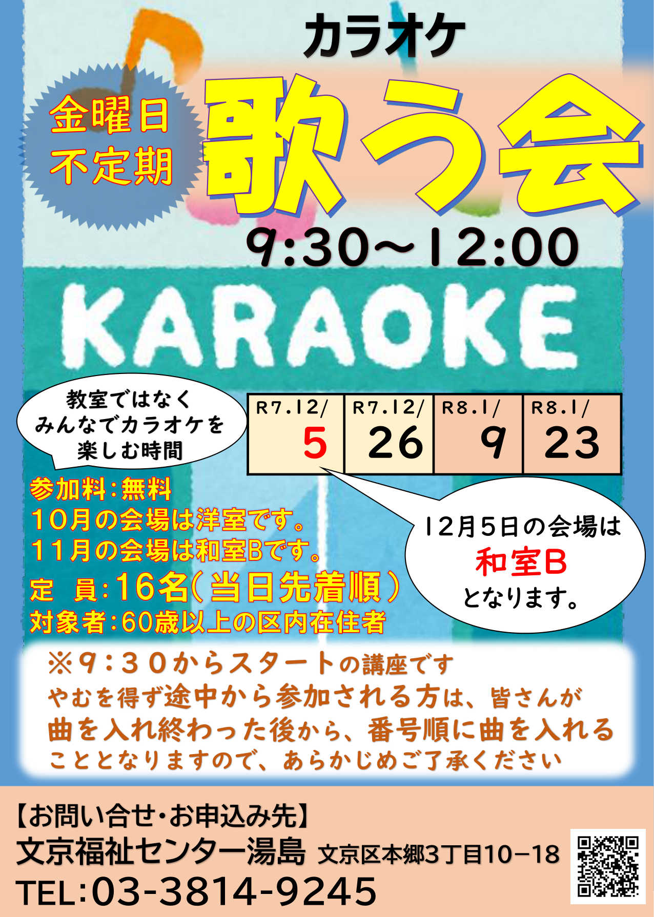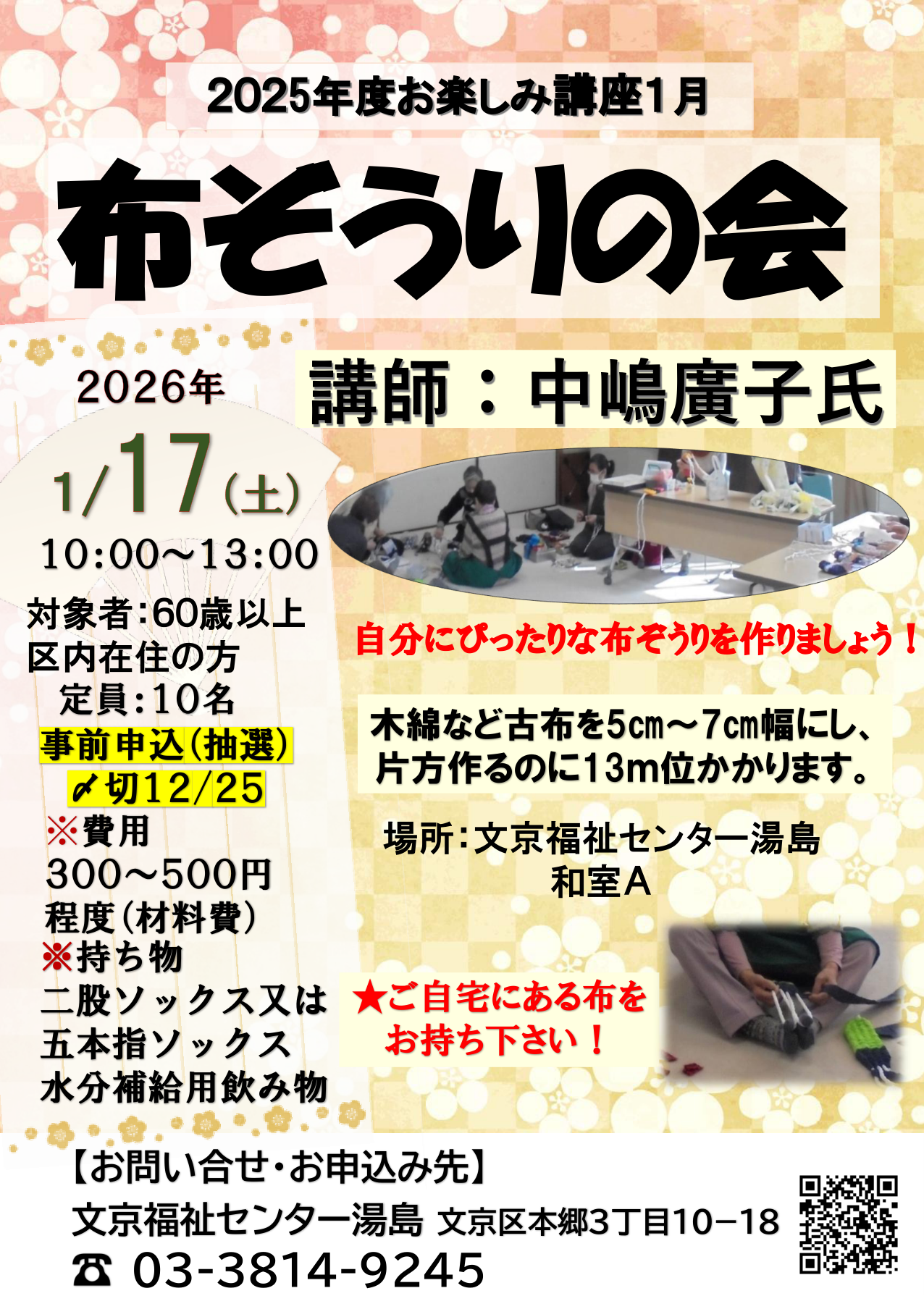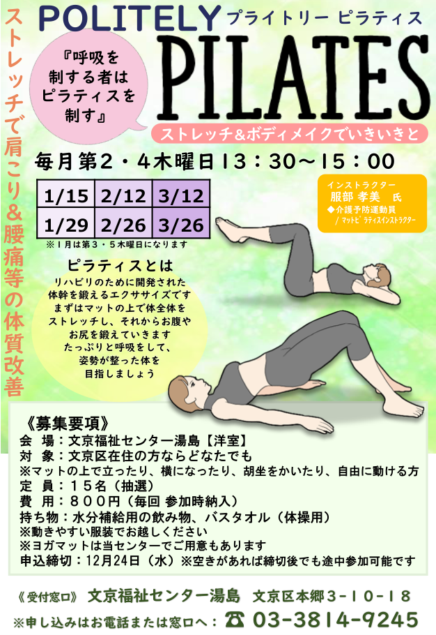 1月15日~3月26日の間の第2・4木曜 13時半~