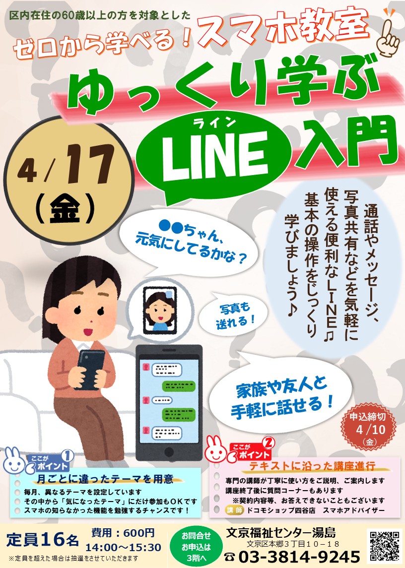 『ゼロから学べる!スマホ教室 4月』のご案内