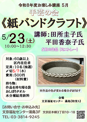 『手芸の会~紙バンドクラフト~ 5月 』のご案内