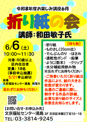 『折り紙の会 6月』のご案内