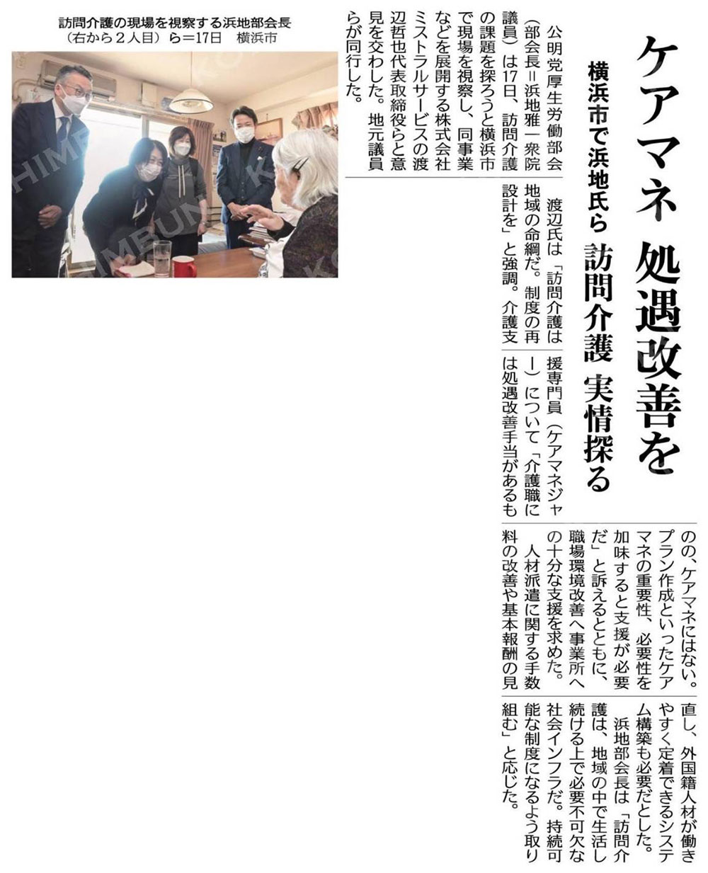 - 自民党横浜市会議員13名による訪問介護現場視察について