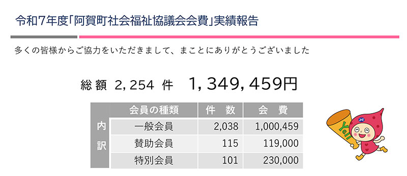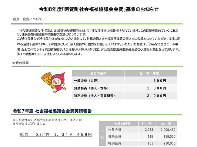 社協会員になることによって、一人ひとりが「地域福祉」を自らの活動と受け止め、間接的に参加していただいているという意味も持っています。