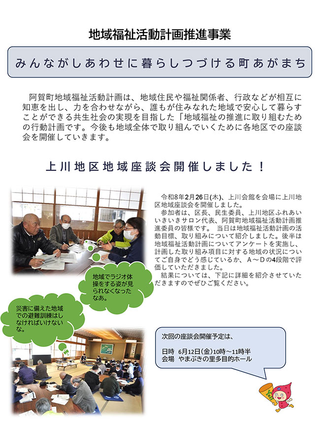 だれもが生きがいをもち、安心していきいきと暮らすまちづくりをめざして、住民と一緒に“地域をむすび”、それが大きな輪になりますように!!