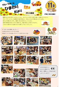 おやつ作り、団らん、歌、体操、趣味(折り紙・書道・編み物・絵画など)