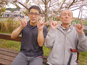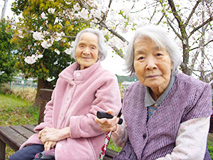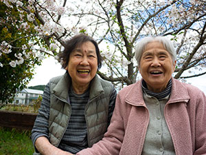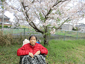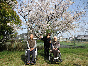 入所者の皆様と庭でお花見を楽しみました。皆さんウキウキ♪とても楽しいひと時でした!