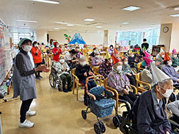 職員によるマジックの披露、練習の甲斐もありご利用者様もきょとんとした表情で楽しんでくださっていました(^-^)/