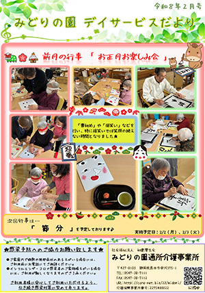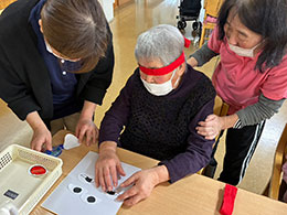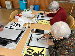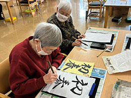 書初めでは「80年ぶりだよ」という声もあり、また、福笑いでは笑顔多く楽しい雰囲気の中での実施となりました♪