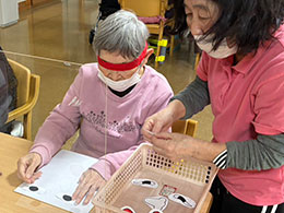 2月行事は感染対策等により予定通り行えず、日を改めて実施をさせて頂きました。そのため、予定通りの内容での実施が難しくはありましたが、みなさん楽しそうに輪投げなどのゲームにご参加下さいました♪