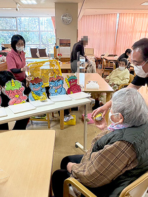 節分の日には、職員が鬼の被り物をして登場!
