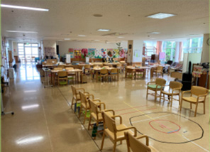 新型コロナウイルスの感染拡大のため、利用者様が使用される全ての食席に「ついたて(パーテーション)」を設置致しました。
