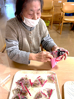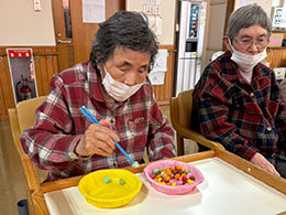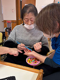 1月の行事では、新年にちなみ「お守り作り」を実施し、皆さまそれぞれに願いを込めながらお守りを作られていらっしゃいました♪