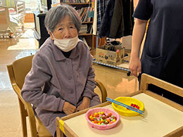 同時に「箱の中身はなんだろな」ゲームも行い、その後は秋らしいかわいいおやつを召し上がられています。