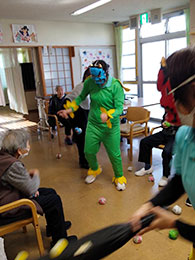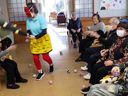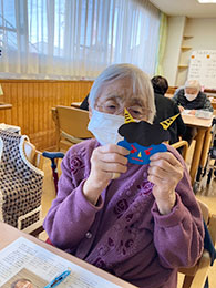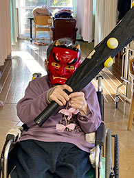 豆まきで鬼退治をしました。「鬼は外〜」と皆様力強く投げてくださり、鬼もひとたまりもなかったようです。