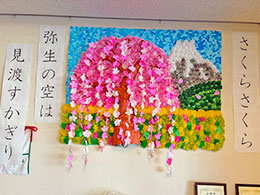 春らしく穏やかな気候に心和む季節になってきました。今月は、少しでも春の季節を感じていただく様壁画作りを行いました。