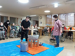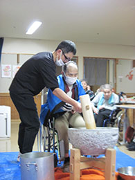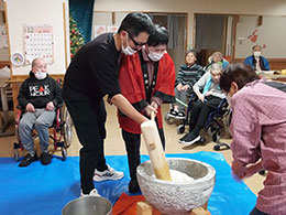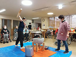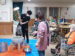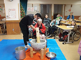 毎年恒例のお餅つき。ご利用者様のお力をお借りして良いお餅ができました。