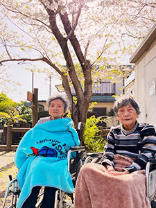 時折吹く風に舞う桜の花びらに、入居者様の笑顔が溢れます。