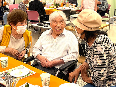 6月中旬に、2回に分けて家族会を開催いたしました。ご参加いただいたご家族の皆様、誠にありがとうございました。 会では、お菓子を囲みながら、入居者様の日常の様子を写真やフォトムービーを通してご紹介させていただきました。久しぶりにご家族水入らずの時間をお過ごしいただき、笑顔や会話があふれる和やかな雰囲気に包まれたひとときとなりました。