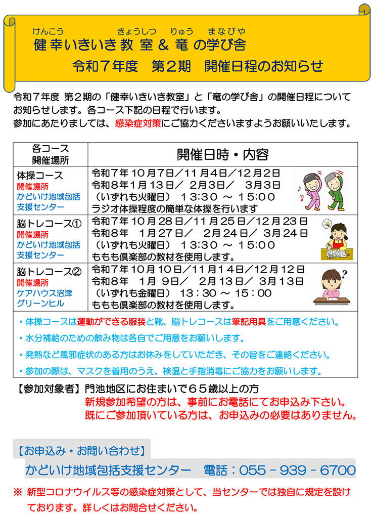 | 参加対象者 | おおむね65歳以上の、門池地区にお住まいの方 要介護認定の有無は問いません |