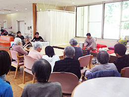 地域とのつながりを大切に考え、いつまでもお元気で住み慣れた地域で暮らし続けられる様、体操・ストレッチなどの生活機能訓練や、さまざまな趣向を凝らしたレクリエーションを行っています。