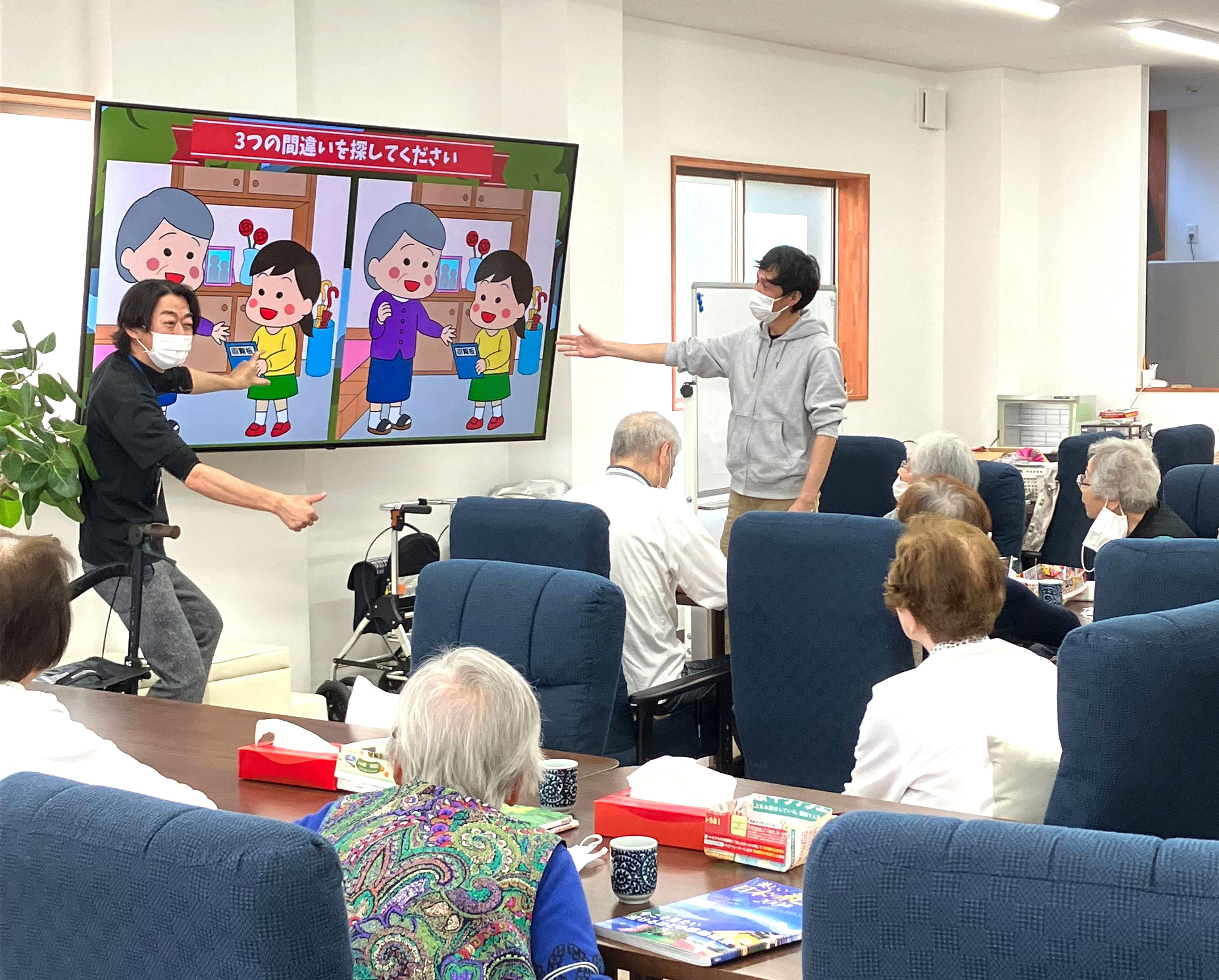 大画面テレビを使って行う最新のレクリエーション、脳トレをどうぞご堪能ください。