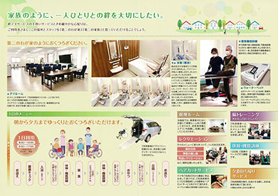 家族のような絆を大切にした、手厚いサービスときめ細やかな心配りは、ご利用者様に、この場所とスタッフを「第二のわが家」「第二の家族」と思っていただけることでしょう。