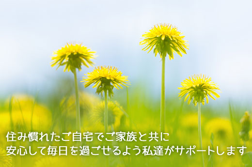 住み慣れたご自宅で、ご家族と共に安心して毎日を過ごせるよう私達がサポートします。