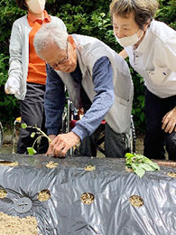 先日はじゃがいもを収穫しましたが、次は秋の収穫に向けてさつまいもの苗 を植えました。 少し汗ばむ陽気の中でしたが、「美味しいお芋に育ってよ~」と願いを込めて 1本1本丁寧に植え付けされました。 秋の焼いも大会が待ち遠しいですね。
