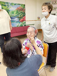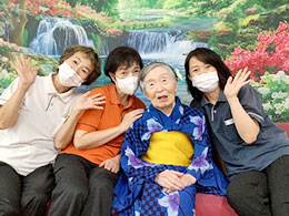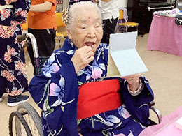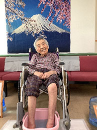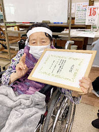 現在、世界最高齢の方は同じ県の芦屋市におられ116才でギネスに登録されているそうです。野田さんもまだまだお元気なので目指せ世界一!をスローガンにこれからも施設職員一同、誠心誠意、支援させていただきます。本日はおめでとうございました。