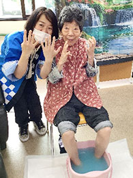 急に暑くなり、クーラーが必要な季節になってきましたね。 でも、クーラーをつけると足元が冷える…。 そんな時は山口苑の湯へいらっしゃ~い! 数種類のお湯に足を浸せば身も心もほっかほか! 思わず「い~い湯だな~♪」と口ずさんでしまいます。 好評でしたので、定期開催していきたいと思います。